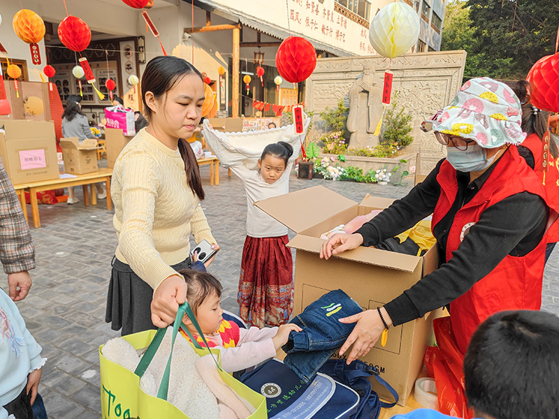 幼儿在老师引导下,按照衣物类别有序将捐赠物品送至指定位置,亲身践行分享与奉献的快乐。