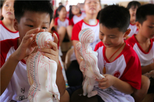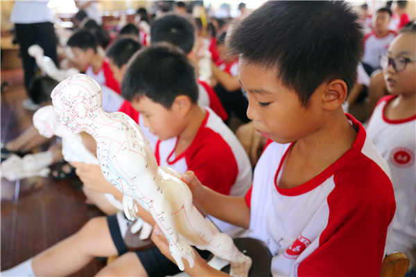 孩子们通过人体模型,认识不同的穴位,了解到每个穴位对应人体的五脏六腑,经脉通络。