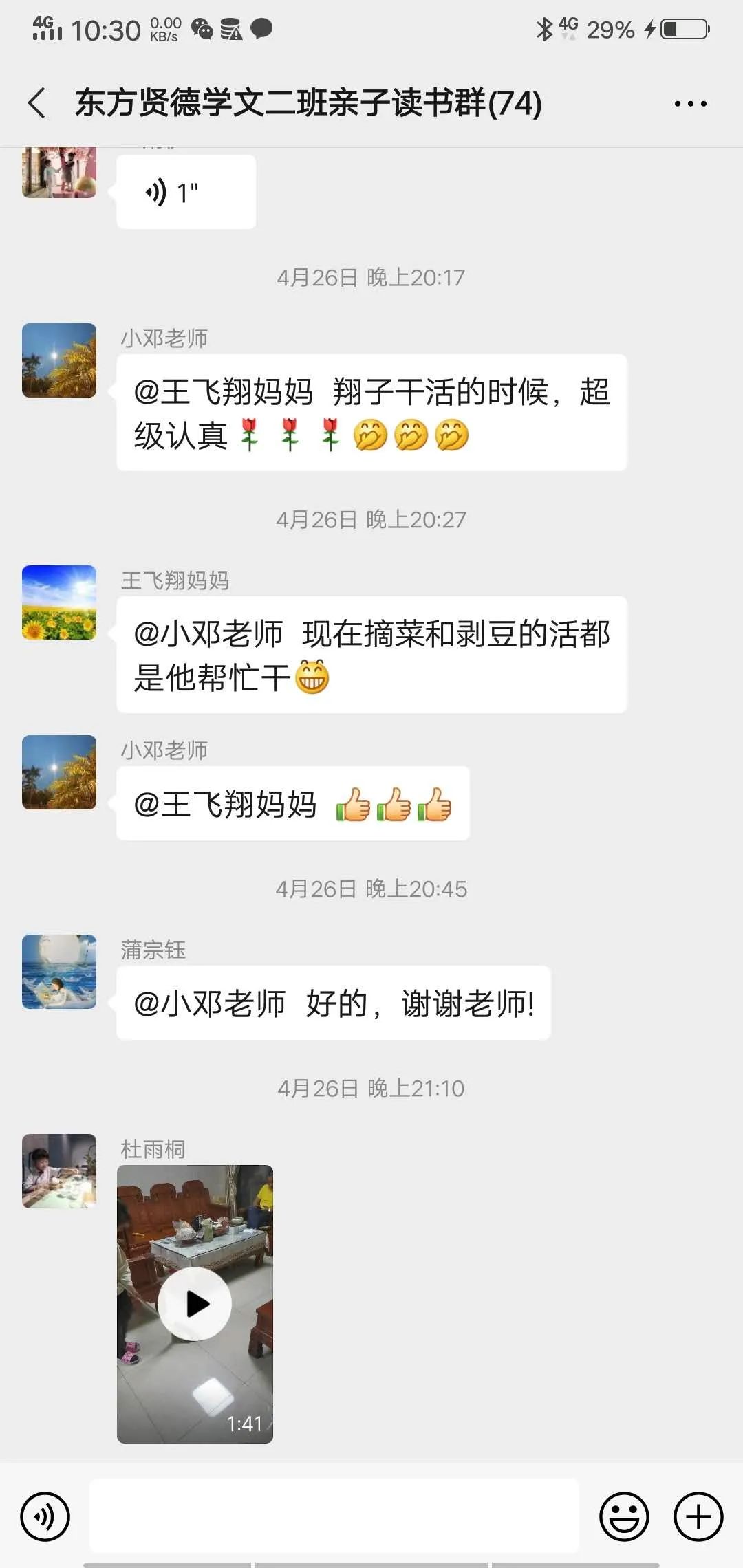 看着孩子们忙碌的小身影,顿时热泪盈眶,忽然觉得孩子们一下子就长大了,那娇小的身躯,已能为父母分担辛劳,单薄的臂膀,已能挑起家务的担子,感恩、孝亲的种子已在孩子们的心中扎根,珍惜生活,热爱生活的已然成为孩子们更高的追求,看着孩子们的成长与变化,老师们也为孩子们的进步倍感欣慰!家长们更是感到无比的骄傲和自豪,也由衷的发表了自己的心得体会。