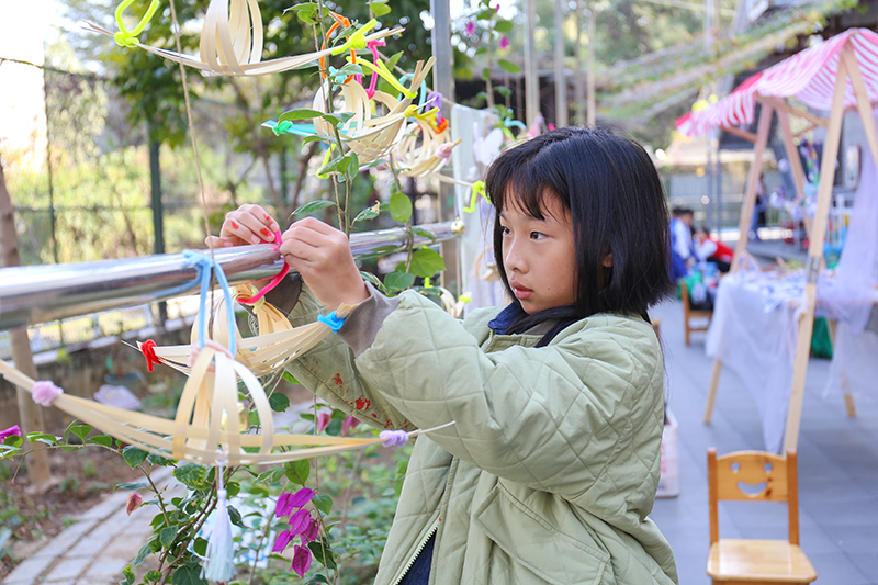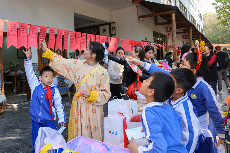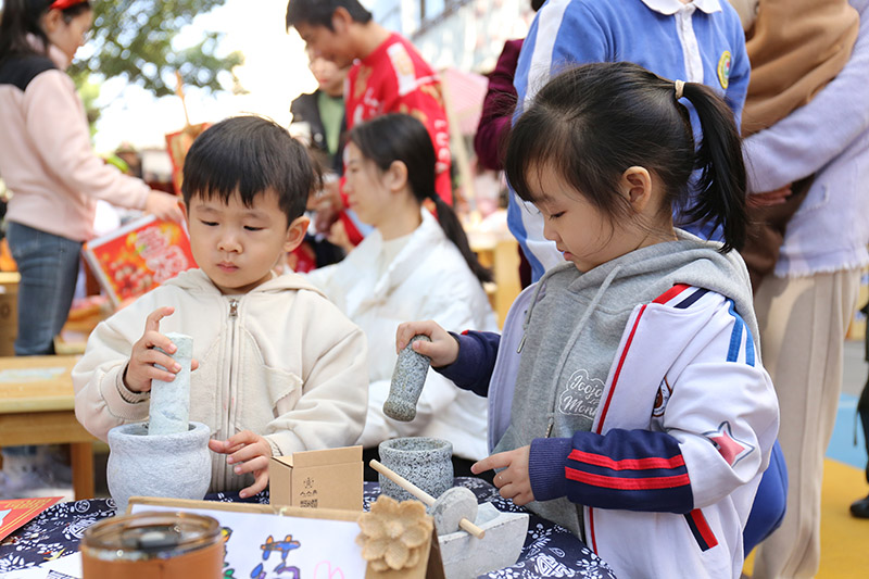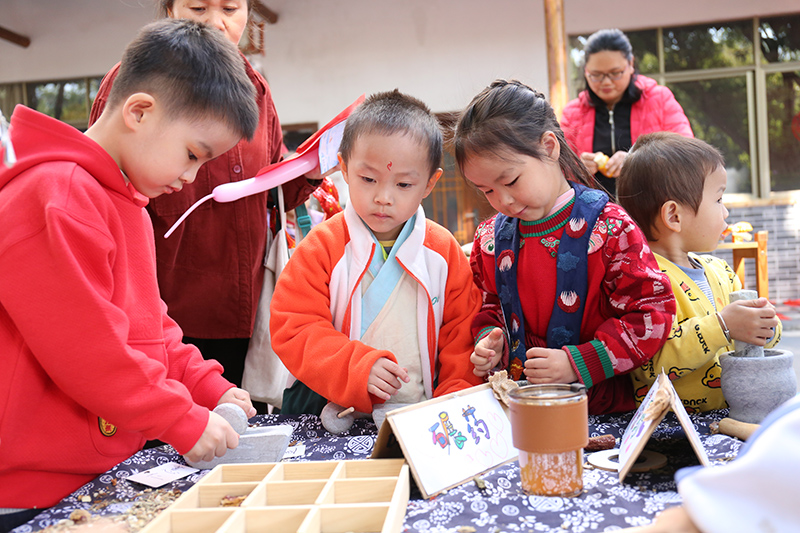 传统文化体验馆有望闻问切问诊堂、研磨中草药、制作艾条、自制养生饮品合成的草药馆;有气球花、百变扭扭棒花、毛线花、窗花合成的四季花体验馆; 有捏面人、扎染、石磨豆浆、巧手竹编、围炉煮茶、拓印福字合成的非遗时光;有书写对联、福字合成的文房四宝;还有辞旧迎新祈福牌。